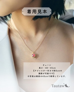 小さなお花モチーフのきらめきに合わせて、内側から光を放つような幻想的な輝きが楽しめるネックレスです。