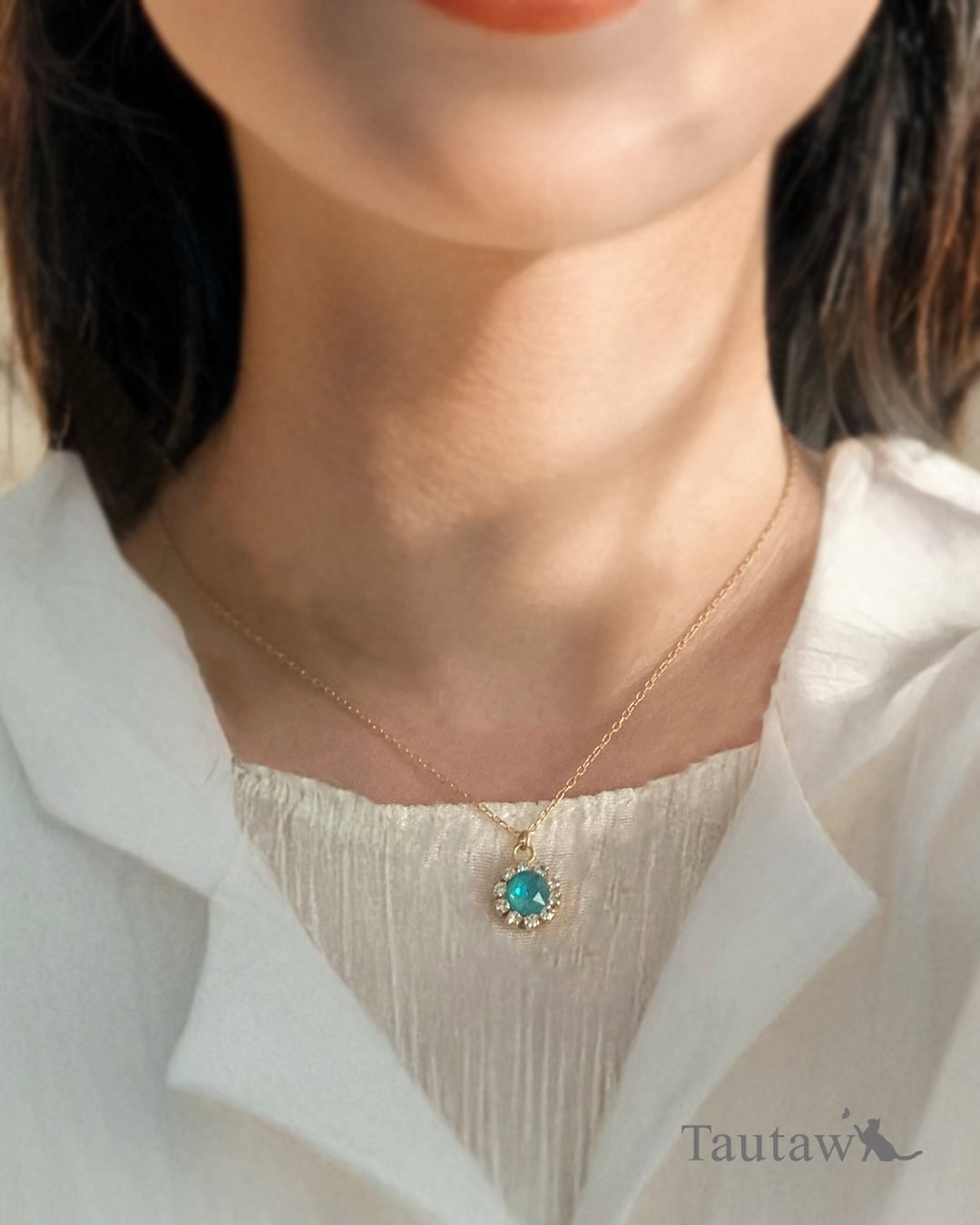 エメラルドのようなラグーンブルー。自然光で輝きが増し、深みのある透明感が魅力。爽やかさと落ち着きを両立。
