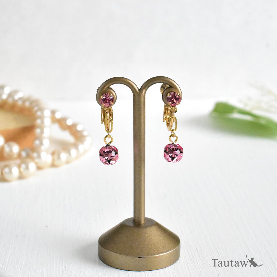 光を含んだやさしいピンク。肌なじみがよく、耳元にほんのり華やぎを添えます。