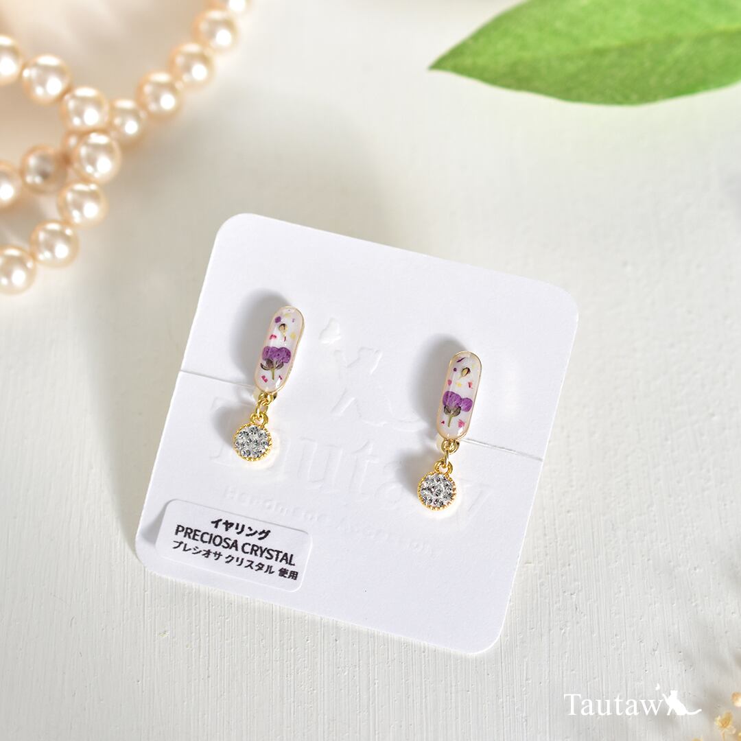 本物のお花とクリスタルを組み合わせた、さりげない華やぎのイヤリング。