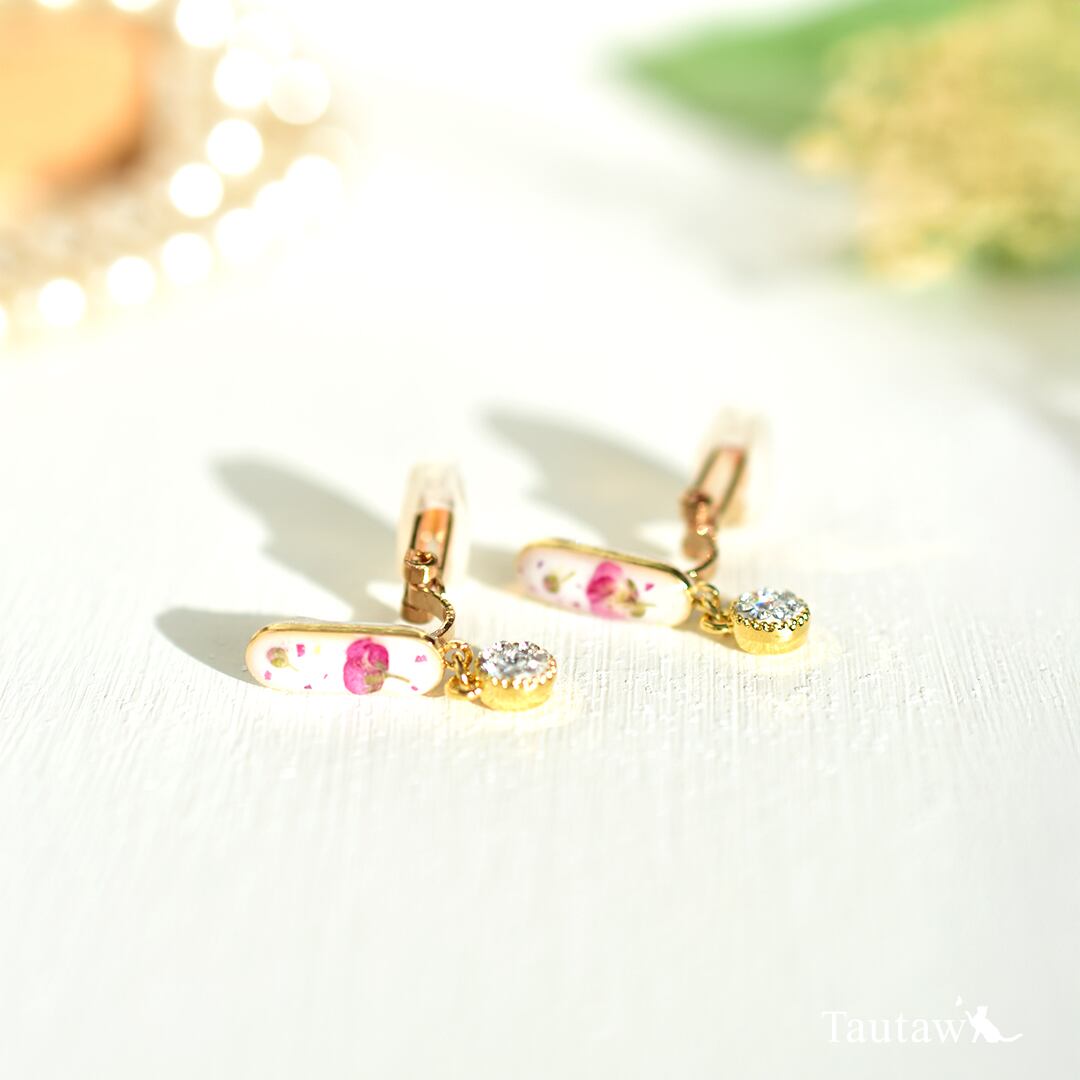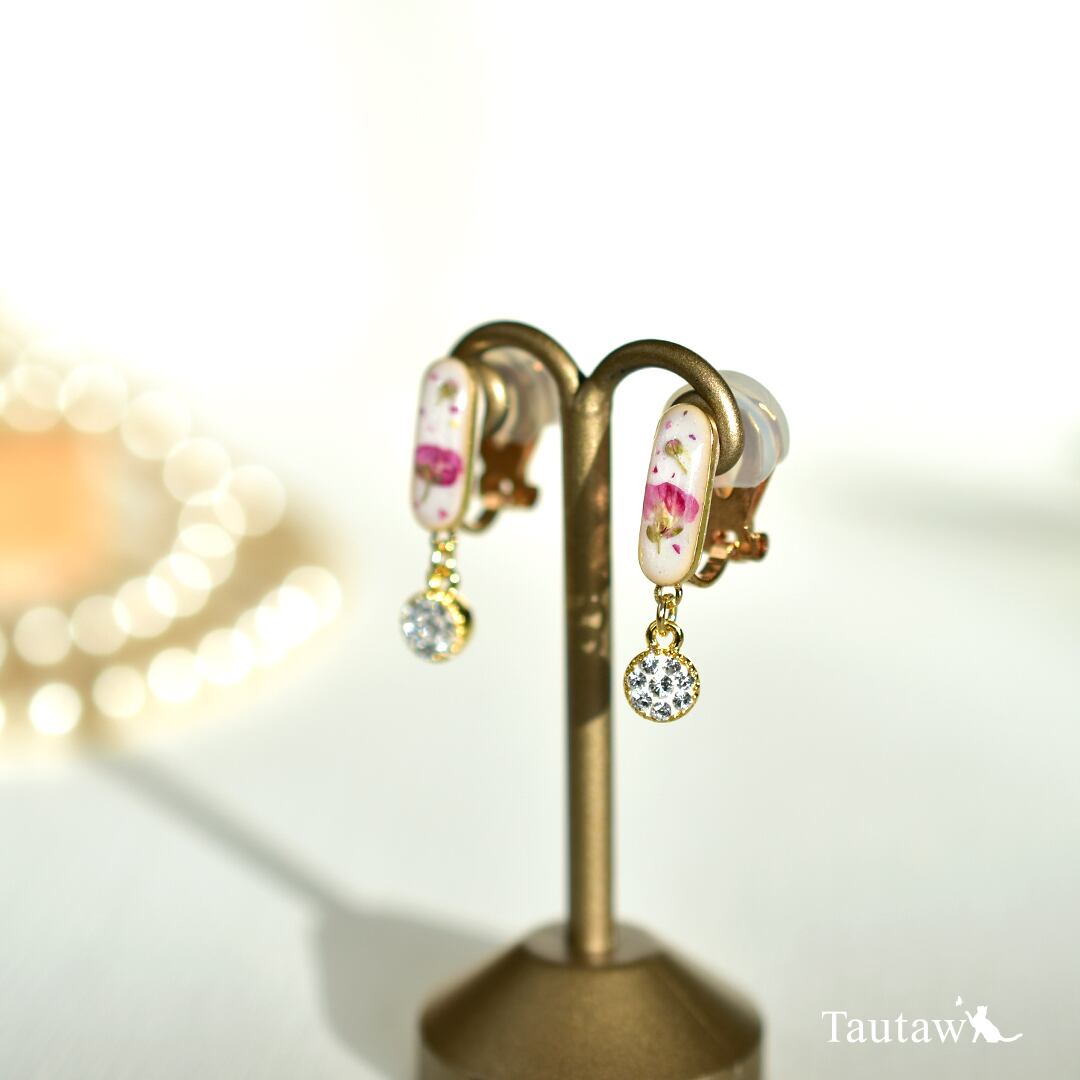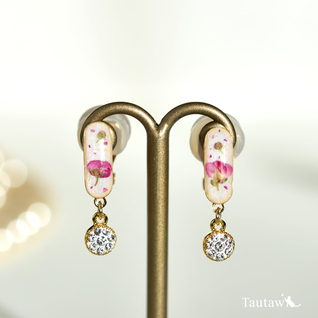 本物のお花とクリスタルを組み合わせた、さりげない華やぎのイヤリング。