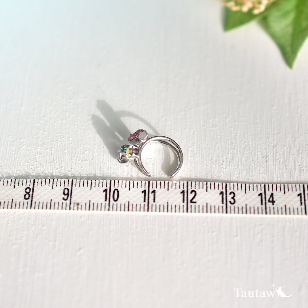真鍮から一点ずつ形を起こし、バランスを確かめながらロウ付けをしてお作りしたイヤーカフです。