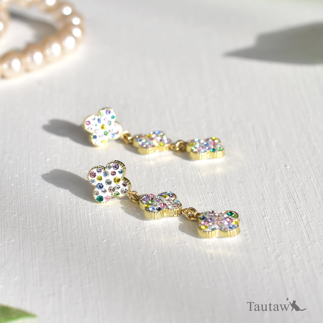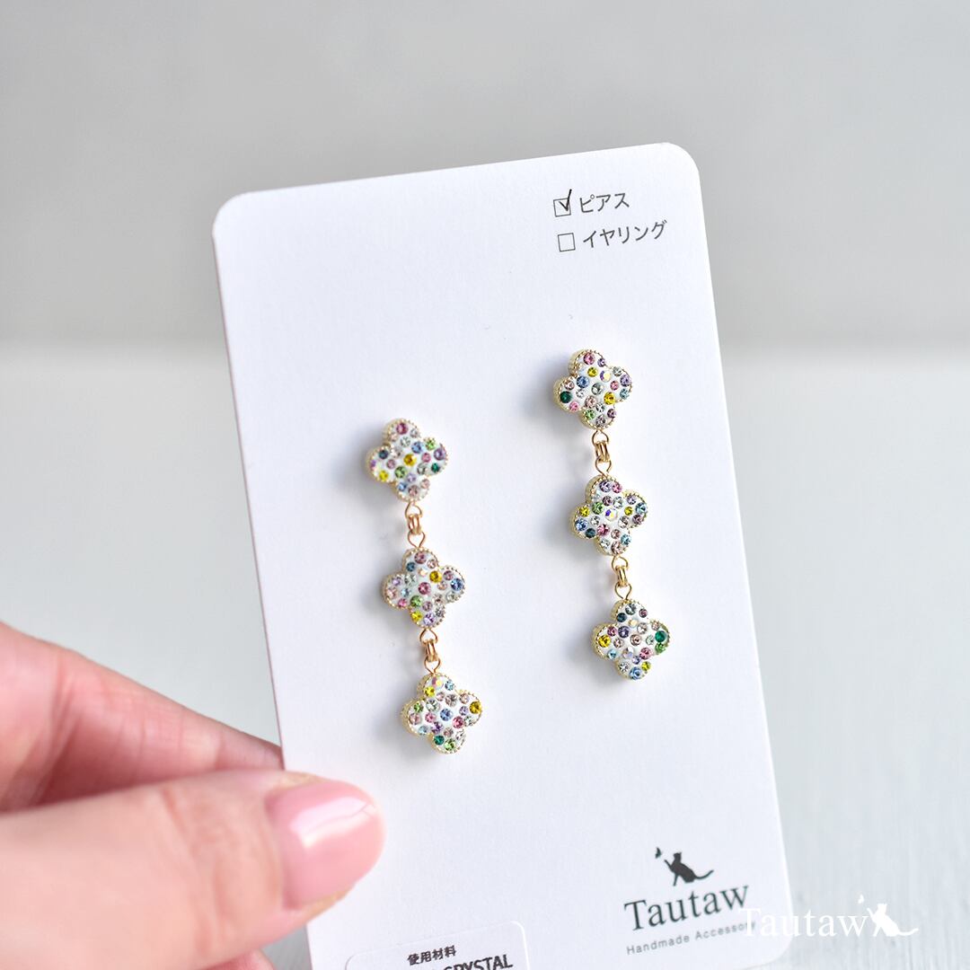 幸運のモチーフであるクローバーを、3つ縦に連ねたデザインのピアスです。