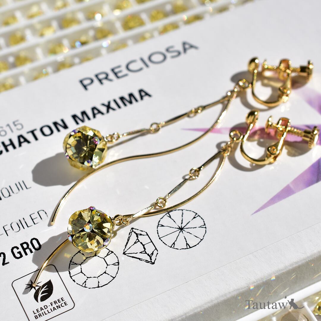 イエロー/黄色/球体ピアス/球体イヤリング/ミラーボール/PRECIOSA/手作り/クリスタルガラス/ハンドメイド/アクセサリー/ジュエリーライク/クリスタルアクセサリー/プレシオサクリスタル/ブライダルアクセサリー