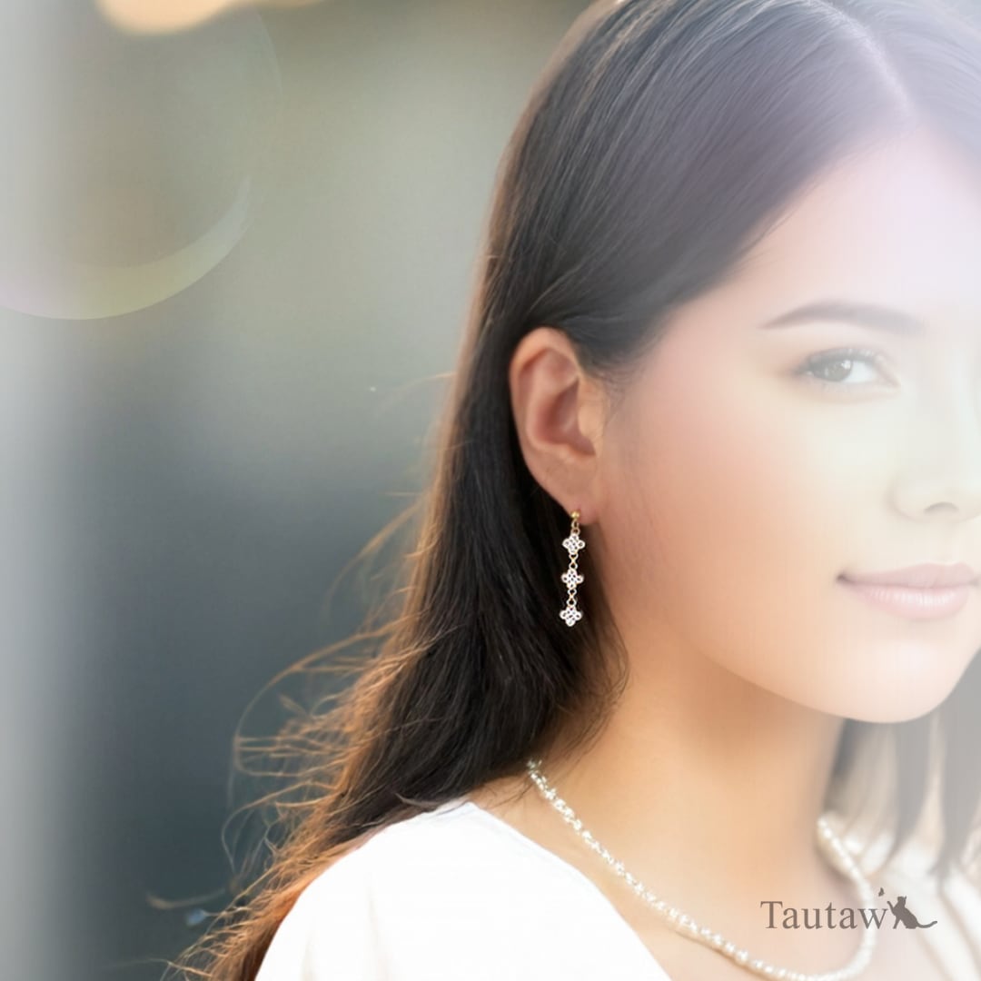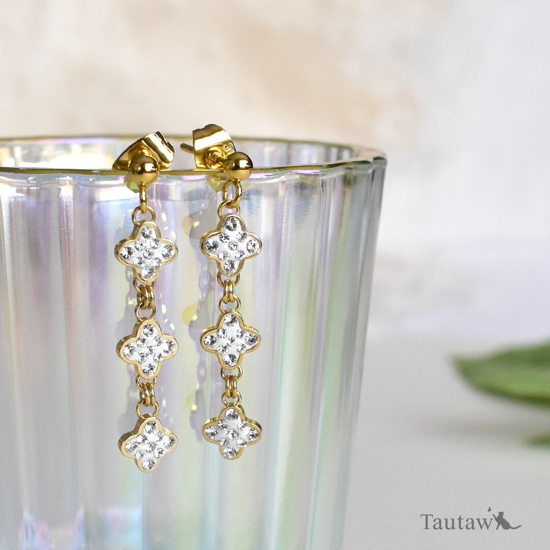 小さなクローバーが3つ、キラリと揺れる軽やかなピアスとイヤリング。