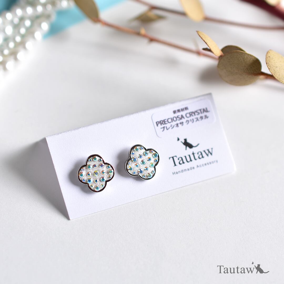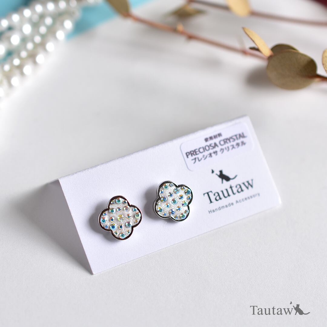 クローバーモチーフ【シルバーカラー×オーロラ】ピアス・イヤリング【受注生産】